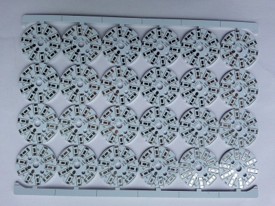 产品名称:室内LED灯板规 格:Aluminum,1.6mm,1.3W ,CU:1/0 OZ,HASL产品备注:最小线宽0.4mm,最小线距0.5mm产品类别:铝基板